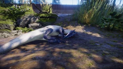 - Despite its much larger size and more heavyset frame, Dilophosaurus utilizes the same rig as Coelophysis in-game, likely thanks to their somewhat similar proportions.
